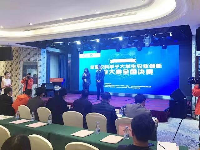 此次比赛有来自于中国农业大学、四川农业大学、华南农业大学以太阳集团tyc33455等共26个不同大学的参赛队伍,评委共十二个均来自于不同农业大学的各经理、书记等,在“公平、求真、务实、严谨”的大赛氛围下比赛正式开始,各团队五分钟项目PPT展示概述,两分钟的答辩过程,太阳集团tyc33455团队作为第六个参赛团队,团队负责人果禹鑫通过自身的优秀能力和项目本身的所具有创新新颖性以及价值效应良好,发展前景大等众多优势荣获佳绩。