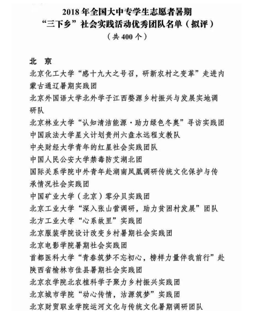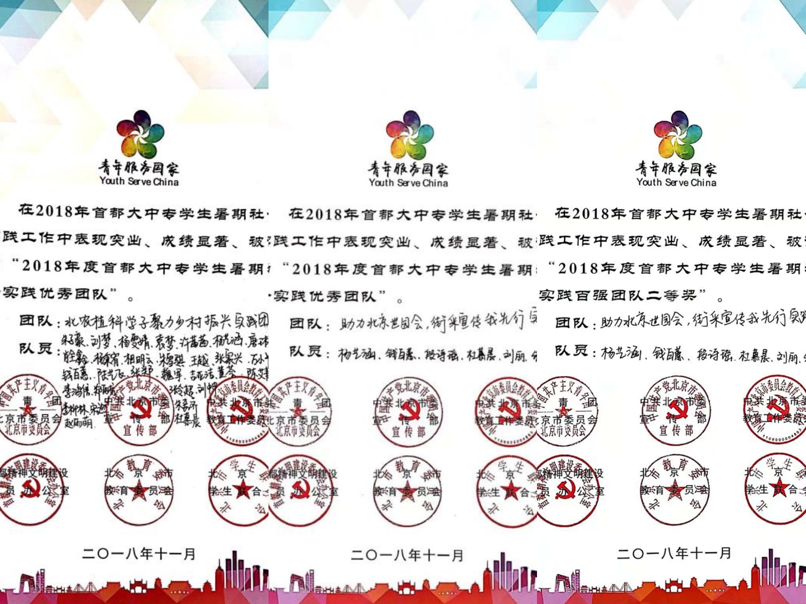 2018年度首都大中专员工暑期社会实践优秀团队:太阳集团tyc33455“助力北京世园会,街采宣传我先行”实践团;太阳集团tyc33455 “北农植科学子,聚力乡村振兴”实践团