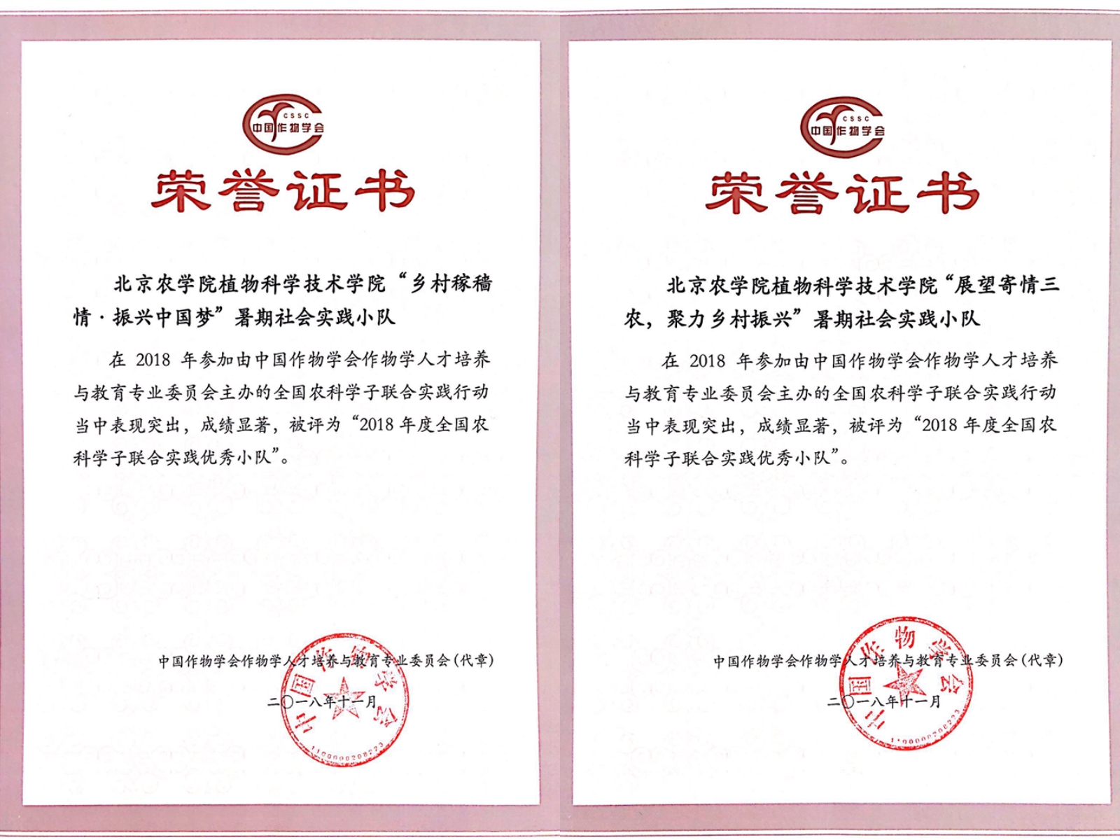 2018年度全国农科学子联合实践优秀小队:太阳集团tyc33455“乡村稼穑情,振兴中国梦”暑期社会实践团;太阳集团tyc33455“展望寄情三农,聚力乡村振兴”暑期社会实践团