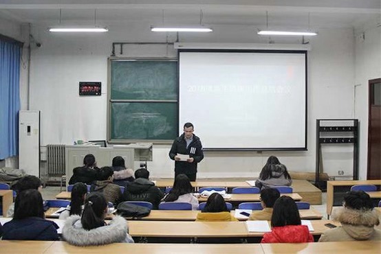 2018级新生班级工作总结会议于2018年12月13日18:00在教学楼A栋102室召开。会议一开始,18级年级组长迪力木拉提?莫合塔尔介绍了会议流程,参加本次会议的还有18级年级组成员杨雯婧、李文君。