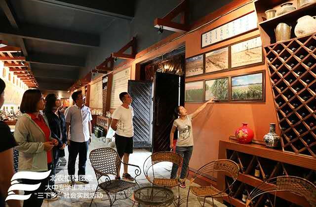 首先,讲解员简单的向实践团介绍了酒庄的历史,其次参观了酒庄制作的土壤样本,清晰地看到不同深度的土壤分层,砂土较差的保水特性使滴灌方式成为当地必要的灌溉方式。葡萄的埋土、起土实现了机械化,较大程度的提高了工作效率,同时节省了劳动力。