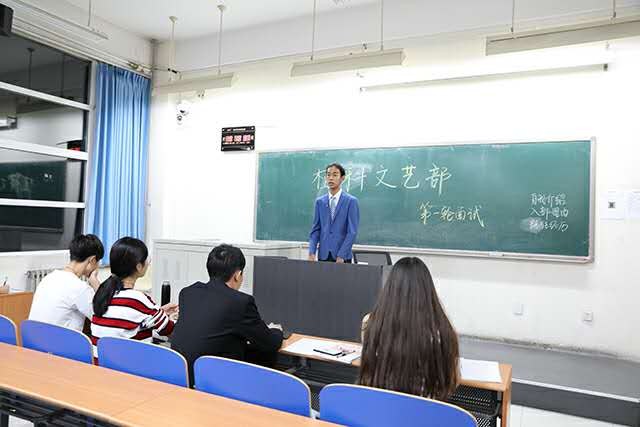面试伊始,各位同学依次上台自我介绍,同时说明自己的兴趣爱好及想要加入的部门以及自己的特长,同学们都积极展示自己的特长,比如绘画、摄影、PS技术、视频后期处理等。无论如何,能够来到面试现场,证明了他们对员工工作的热爱。