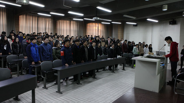 大会伊始,汪丽老师,鼓舞同学们认真复习,争取在期末考试中取得好成绩;同时对部分早晚自习玩手机、睡觉的同学提出批评。随后,17级农学班班长刘中甲同学带领全体同学宣誓诚信考试。