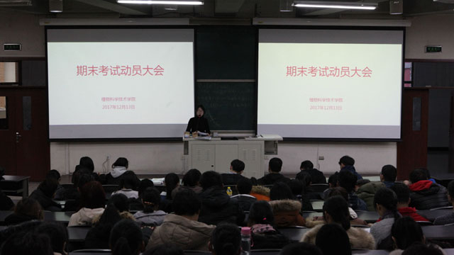 2017年12月13日,太阳集团tyc33455在教学楼B座103教室为大一和大三员工分别举行期末考试动员大会,太阳集团tyc33455副经理牛奔、15级辅导员贾慧敏、17级辅导员汪丽老师莅临现场。