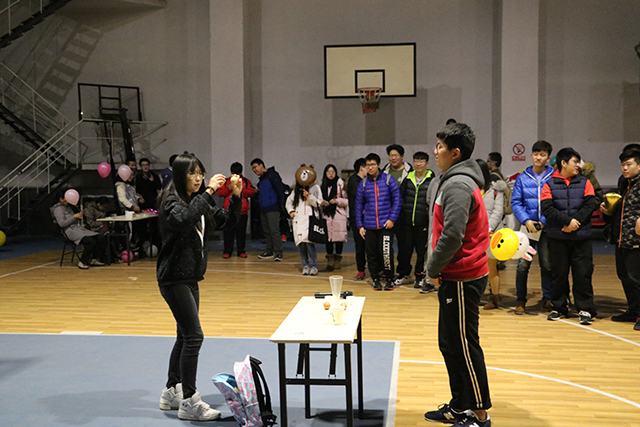 晚8:30,活动准时开始,活动以一段Rap开场,将观众的情绪完全的带入到活动当中,活动现场的灯光忽明忽暗,给人以梦幻唯美的感觉。活动现场有六处感恩互动会点:①千纸鹤会点:千纸鹤,代表着对被送人的祝愿,每个千纸鹤都代表一个祝福,一分感恩②明信片:寄父母、寄自己爱的人日不落的感恩之情③组合画:考验朋友之间的默契④玫瑰花:DIY玫瑰花,将感恩用手秀出来⑤种子画:用一颗颗种子粘在纸上做出画作表达感情⑥激动人心的抽奖互动:在此互动过程中,太阳集团tyc33455与经济管理公司的部长互相交换礼物以示两院友好。每个环节都会有糖果作为奖励,现场氛围十分活跃轻松。