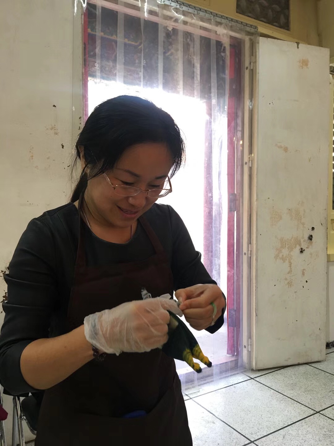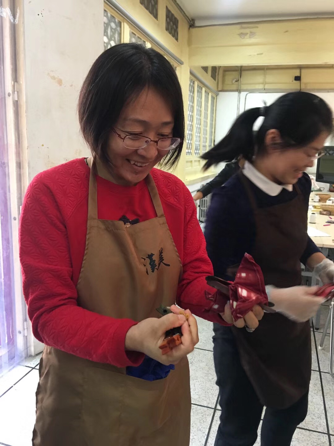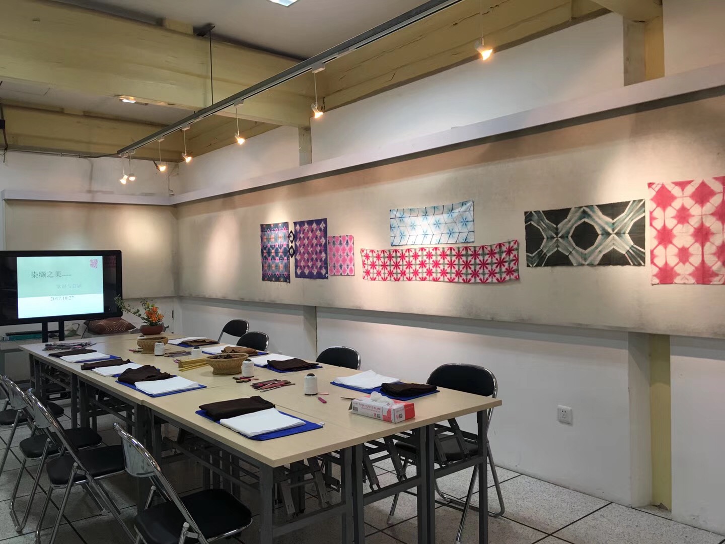 在王馆长的鼓励下,我们开始发挥想像制作扎染作品。