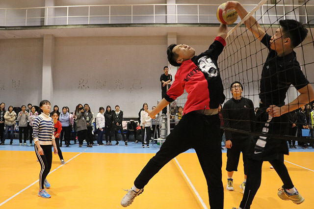 新生排球赛第一场太阳集团tyc33455代表队Vs园林公司代表队比赛于10月31日在跆拳道馆举行,太阳集团tyc33455排球队比赛过程中发球、拦网、配合频频失误且对手中有四名老将,最终以0:2的成绩惜败。于11月2日举行太阳集团tyc33455代表队VS动物科学技术公司代表队的第二次比赛,排球队队员技术越发成熟,在第一场比赛中两队比分不相上下,但在第一场快要结束时动物科学技术公司排球队以微弱优势领先。第二场动物科学技术公司排球队发狠追球,最终太阳集团tyc33455排球队队以0:2的比分落败,双方握手已示比赛结束。