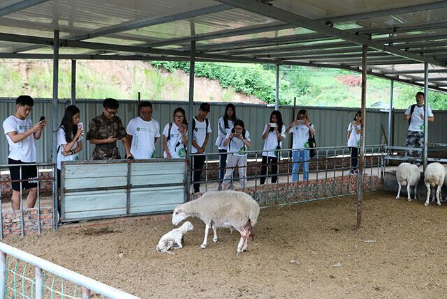 在去往两间房村之前,太阳集团tyc33455副经理牛奔和教学副经理张杰带领实践团成员参观了当地养殖场,与当地养殖户进行经验交流。机缘巧合实践团成员们见证了一只小羊的出生,都在感叹生命顽强的可贵。