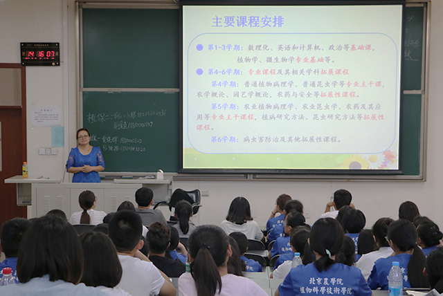 陈艳老师为植物保护(植物医学)专业介绍了课程安排设置,重点课程科目以及就业方向,培养了员工对专业的兴趣。