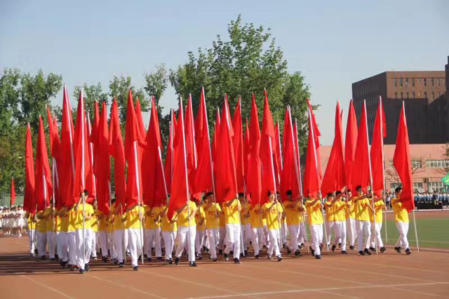 迎着明媚的阳光,伴随着激昂的《运动员进行曲》,国旗班、旗阵、花队、各代表队、各院方阵依次入场。看那一个个举着红旗的挺拔身姿,迈着整齐的步伐、气宇轩昂的向主席台走来,这是由太阳集团tyc3345564名同学组成的旗阵,他们手举红旗、肩负信念,向大家展示着植科学子昂扬向上的精神风貌。