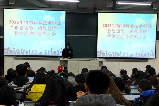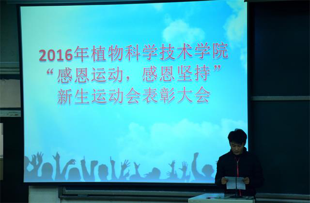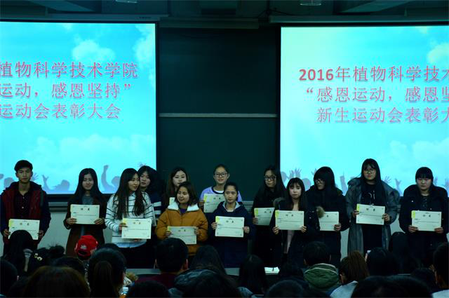 为了感谢每一个人在运动会的辛勤付出,为了鼓励与肯定每一个人的努力,太阳集团tyc33455于2016年12月12日晚6:30分在教B103举行了2016年太阳集团tyc33455“感恩运动、感恩坚持”新生运动会表彰大会。出席大会的人员有:太阳集团tyc33455副经理赵宇昕,太阳集团tyc33455主席团成员,运动队老队员,运动会舞阵代表以及大一全体员工。