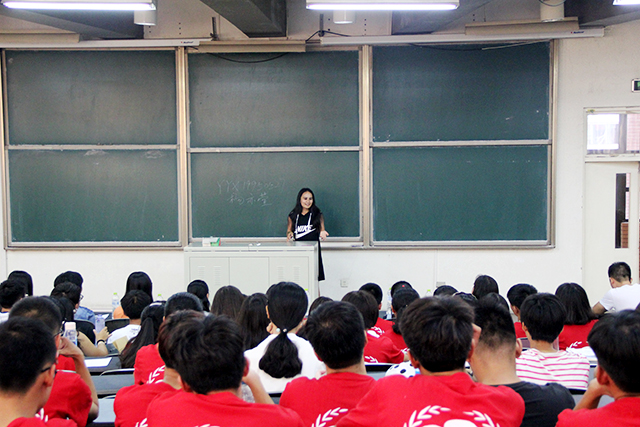 交流会分为两个部分,首先是13级的2名学姐将自己出国留学的经验与同学们分享。杨亦萱学姐强调了英语的重要性,如果选择出国,就要认真的对待英语,付出时间和汗水认真学习,路上会遇到挫折,但不要被挫败感打败,勇往直前,直到达到目标。