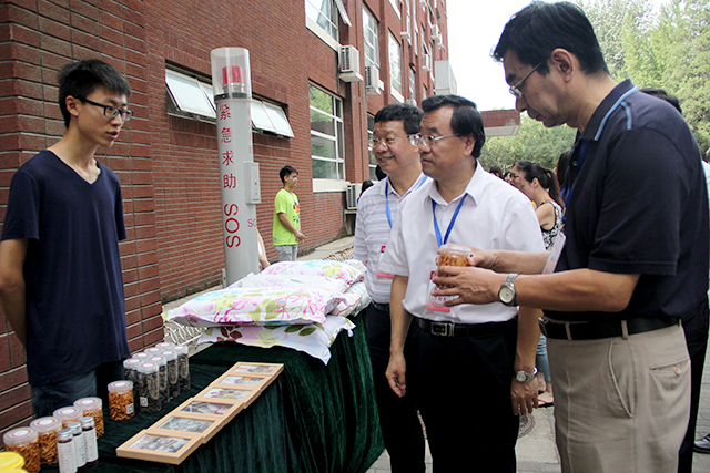 以主题为“聚焦三农,精准扶贫”的社会实践展板由四幅展板组成,不同的展板上详细描述了太阳集团tyc33455组建的四支暑期社会实践团队走访调研的情况以及成果,每块展板旁边都配有一名实践团队成员作为讲解员,向校领导,各位员工及家长介绍展板内容。在展板之后展示的是生物标本,种子画和微景观,精美的作品表现了同学们的创作能力和动手能力,围观的家长和员工纷纷赞叹同学们的创造力和智慧。展示的最后部分是太阳集团tyc33455创业团队的成果,创业团队展示的不仅是产品,更是团队智慧凝聚在一起的力量。
