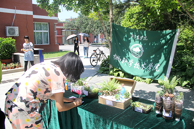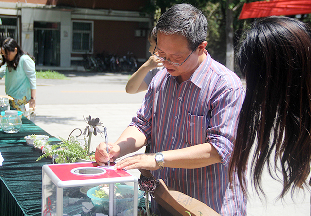 我们处在一个盛行“微”的时代,微博、微信、微新闻、微小说、微公益、微幸福……现在我们集体体验和欣赏目前盛行的微景观。晶莹剔透的玻璃瓶子、绿意盎然的苔藓植物、错落有致的景观、各种小玩偶……这些组合在一起,构成了一个妙趣横生的微观世界,陈列的比赛作品各有各的创意,各有各的精彩。在整个投票活动中,路过的同学老师都驻留欣赏,认真评选,投出了宝贵的一票。在投票专场旁,有专门设置的一个微景观制作体验区,让更多有兴趣的同学动手操作,体验乐趣。