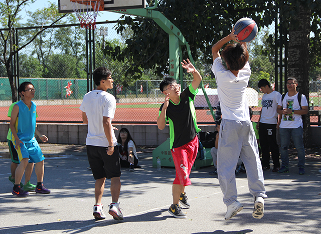 2015年9月25日中午12点整,太阳集团tyc33455新生篮球赛男生组开始了第三轮的激烈比拼,参加比赛的是植保队和园艺队,两队实力不相上下。