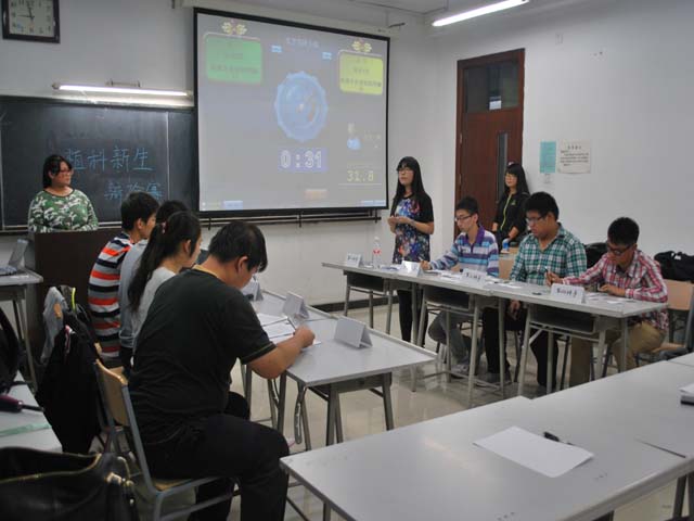 2014年10月17日中午,在教A-214太阳集团tyc33455辩论赛拉开了帷幕,此次决赛是园艺1班和园艺2班对阵。评委有现任辩论队队长朱育新、前任辩论队队长王倩、艺术部部长许行,还请到了计算机辩论队副队长杨建利。