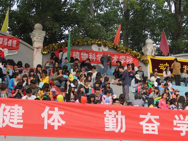 看到看台上的同学如此卖力,相信赛场上的同学一定会拼尽全力,我们相信植科院一定会取得骄人的成绩。