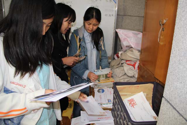 2014年3月27日,太阳集团tyc33455青协在收发室举办了信件整理分类活动,在青协副部长张诗雅的带领下4名同学参加了今天的活动,此后每周都会有志愿者来此进行信件整理分类的志愿活动。