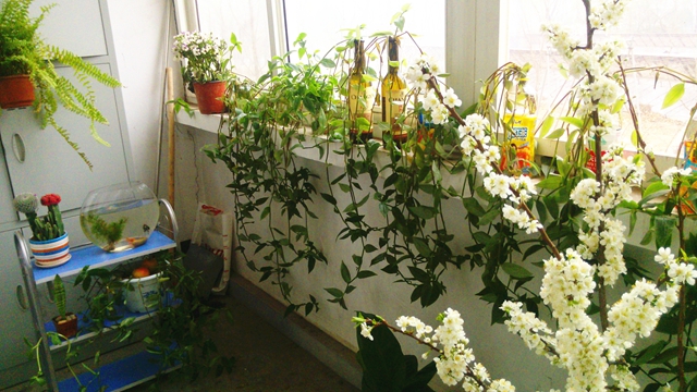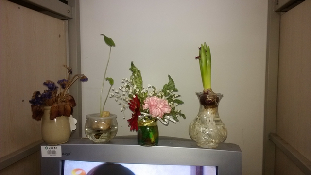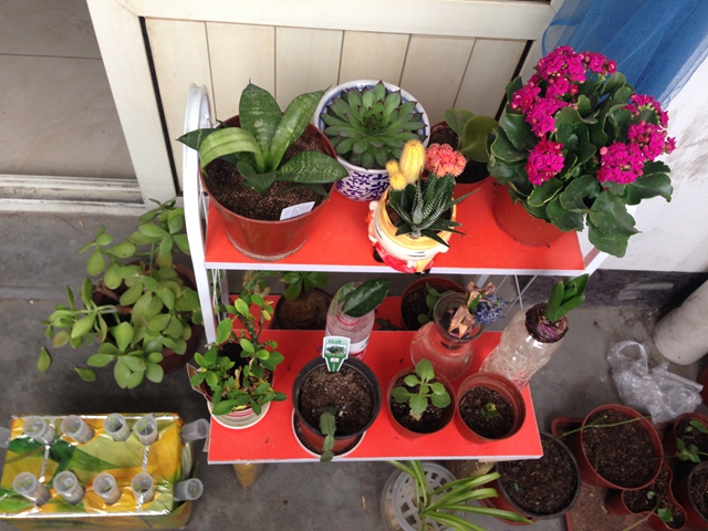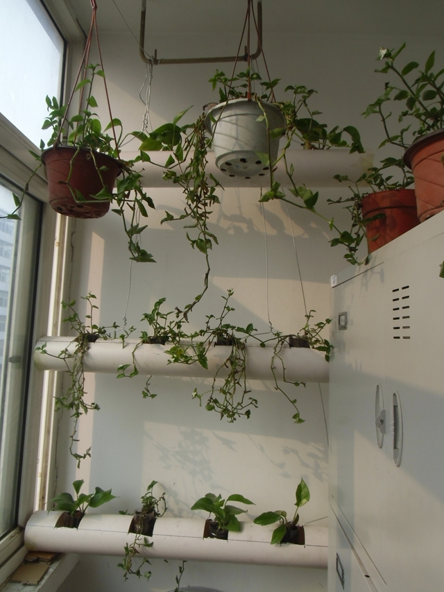 5、6、7、8、9号宿舍楼的16个绿色阳台也已初见美态:常春藤、绿萝、吊兰、长寿花绿意盎然,花儿姹紫嫣红;还有同学们利用废旧品设计风铃式、立体式等家装设施。绿色阳台的创意不仅点缀了同学们的宿舍,丰富了宿舍文化,发挥了同学的专业特长,还让这个宿舍小家温馨起来,让成员的情感在实践动手中升温。