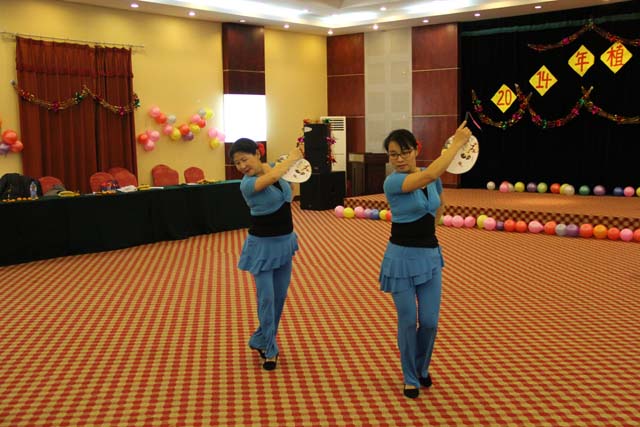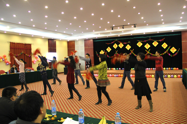联欢会文艺演出在新教工的“欢欢喜喜过大年”大秧歌舞中拉开了的帷幕。李梅老师演唱的一首《乡恋》,赢得阵阵掌声;刘正坪与赵晓燕老师带来的双人古典舞“红袖添香”,使全场沉醉在悠扬的乐曲中,她们身姿轻盈,翩翩起舞,宛如天仙。
