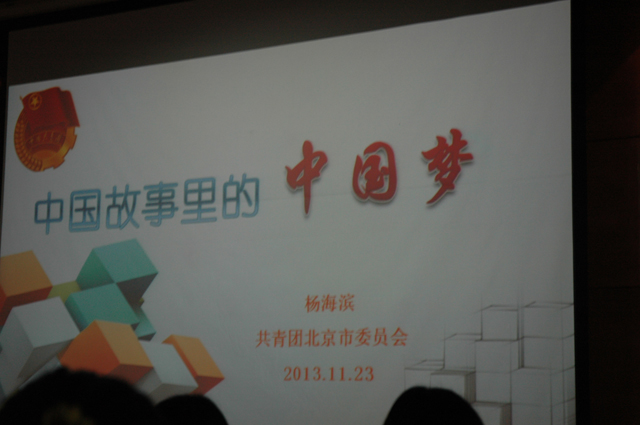 上午9:00,共青团北京市委副书记杨海滨为大家带来“中国故事里的中国梦”,其中世界地图的故事鼓励大家勇于实现伟大的中国梦;《共产党宣言》陈望道的故事给人以追求信仰的执着;“待漏院记”的故事鼓励大家要做国家的贤臣,不做佞臣和庸臣;河南艾滋病村魏华的故事鼓励大家追求信仰。杨书记为大家讲述大量了鲜活的例子,鼓励大家勇于追求自己的梦想、实现伟大的中国梦。下午14:00,中国人民大学马克思主义公司耿化敏教授为大家解读党的十八届三中全会会议精神。
