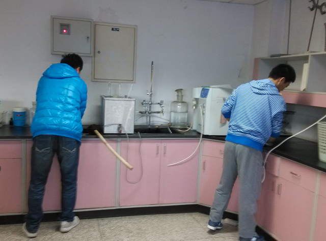 扫除中同学们分工有序,忙而不乱,认真仔细的清扫擦拭每一个角落,大家干劲十足,高效率的完成了实验室的清扫工作。此次义务之举得到了实验室老师的赞赏。此外,同学们认真检查并排除了用水用电以及药品摆放的安全隐患,真正做到防微杜渐,同时也为同学们实验课安全上了重要的一课。