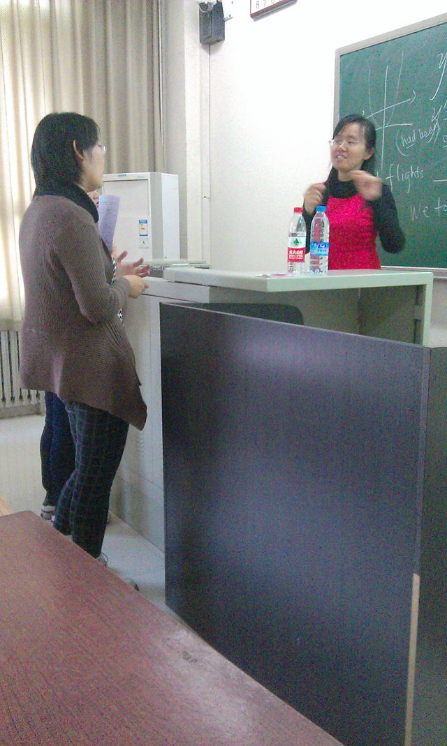 两位老师精心准备了课程内容,课程开始前便下发一份阅读材料,并进行PPT授课。马老师准备一套试题现场给同学们模拟,之后逐一的讲解,每一种解题技巧都紧密的结合新四级题型,并以模拟阅读题的分析为例,帮助同学们了解四级阅读考试的相关内容和解题技巧,鼓励同学们在阅读中背单词,扩大词汇量。张老师详细讲解了六级的改革及新题型,随后她从阅读的目的、六级阅读新题型的构成、阅读的解题方法和技巧、提高阅读速度的方法等四个方面入手,为同学们讲解英语六级阅读题型;在课程中间,同学们踊跃的提问,马老师和张老师都耐心的一一进行解答,同学们获益良多。