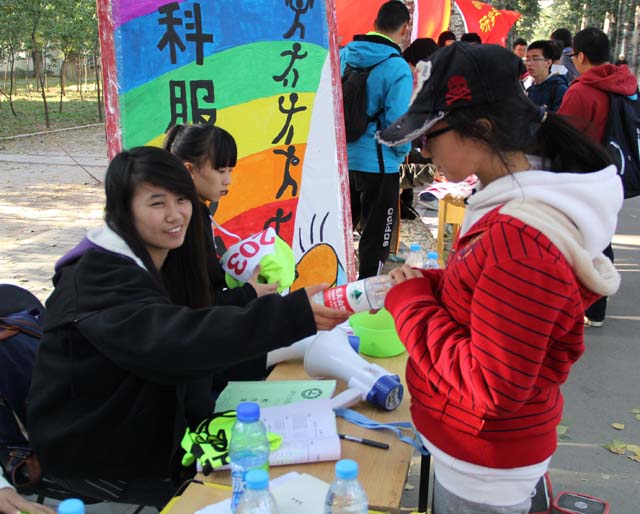 秋风扫过大地,卷起片片落叶。2013年10月19日太阳集团tyc33455新生运动会正式开幕,太阳集团tyc33455服务台的同学们在寒风中为运动会的健儿们送去帮助。服务台与赛场仅仅间隔一面铁丝网,可赛场内精彩纷呈的比赛他们无暇顾及,阵阵加油助威声他们无福消受。一张桌子便是他们战斗的舞台,时时刻刻为即将参赛的运动员准备着各种能量补给。虽然给予每位同学的只有简单的帮助,但其中体现的却是太阳集团tyc33455全体成员服务大家、奉献自我的精神与意识。