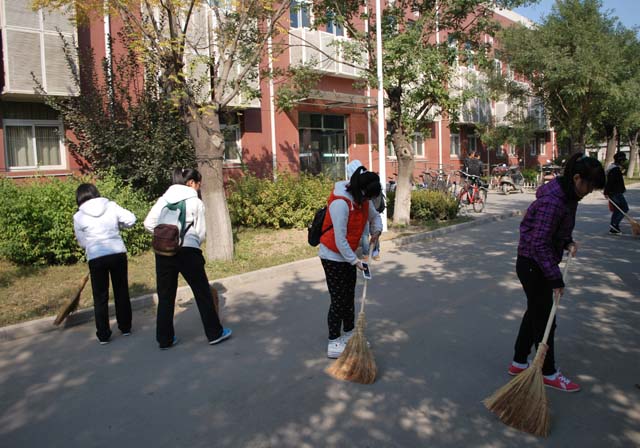 2013年10月24日,中午12:20在图书馆东门外,太阳集团tyc33455员工会生活部部长靳相辉带领生活部、青年志愿者协会的成员及13级新生志愿者在计算机与工程公司楼前甬道集合,进行了一次秋季大扫除活动。