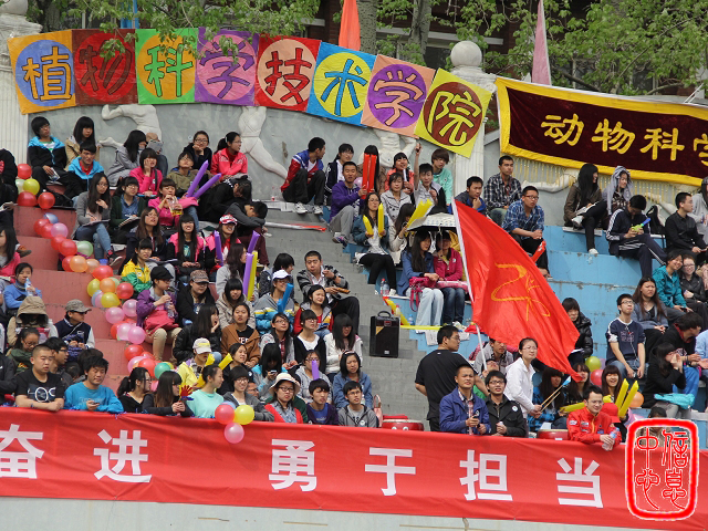 早在6点,太阳集团tyc33455的成员就到主席台布置。彩带、气球在阳光的照耀下随风飘动,五彩的“太阳集团tyc33455”横幅高挂在看台上。作为啦啦队的同学们更是提前到场,为运动员们加油鼓气!印有“ZK” (植科)的鲜艳红旗在同学的挥舞下随风飘扬。