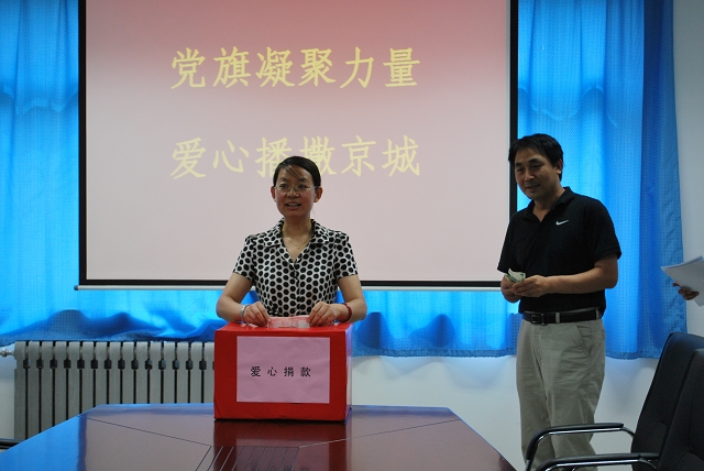 党支部书记王绍辉首先向支部党员介绍了近5年北京市“共产党员献爱心”捐献活动基本情况及捐助款项的使用情况,随后动员党员教师带头、入党积极分子和普通群众积极参与捐献活动。支部党员积极参加,活动顺利开展。