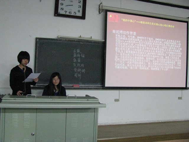 本次活动支部邀请了农学、园艺、农业资源与环境三个党支部的党员和积极分子参加。在主持人韩蕾的详细介绍下,大家了解了《南泥湾》和《我的中国心》两首歌曲创作背景与时代意义。在宋然同学的带领下,同学们一同学习了这两首歌曲。各支部自选歌曲进行拼比,气氛热烈融洽。