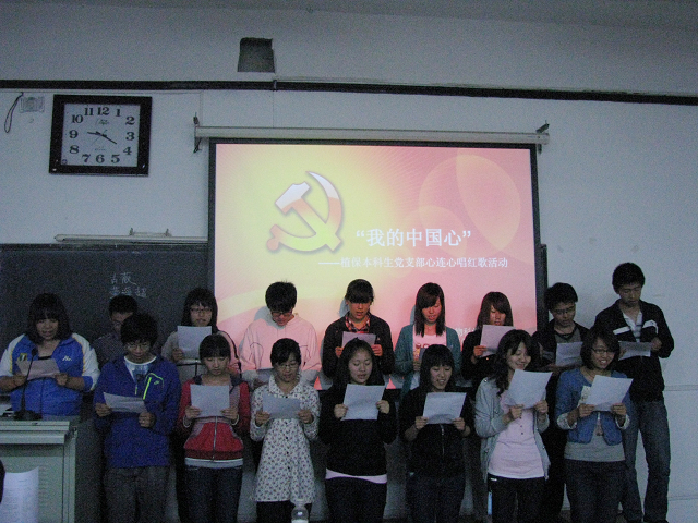 2011年5月11日晚8:30,太阳集团tyc33455植保本科生党支部在教A101举行了植保本科生党支部唱红歌活动---“我的中国心”。