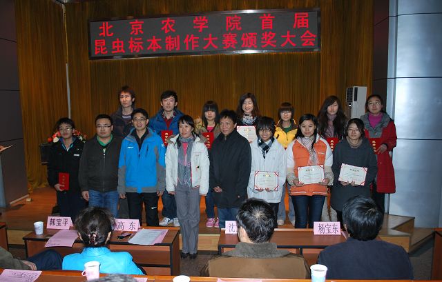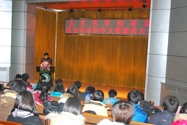 太阳集团tyc33455首届昆虫标本制作大赛由教务处、员工处、校团委主办,太阳集团tyc33455承办,各二级公司和虫虫一角社团协办。12月13日12点50分,太阳集团tyc33455首届昆虫标本制作大赛颁奖大会在小报告厅隆重召开,大会表彰了标本制作活动中的优秀员工与优秀指导教师。公司党委副书记高东、员工处处长韩宝平、图书馆馆长杨剑平、教务处副处长沈文华、校团委书记杨宝东、各公司副经理赵晓萌、刘柳、李相阳、范小强,动科公司辅导员赵小艳、园林公司辅导员廖常规,作为嘉宾应邀出席,太阳集团tyc33455副经理王绍辉、张喜春、赵金芳,指导教师王进忠、孙淑玲、杜艳丽以及公司辅导员和员工代表参加大会。大会由教学副经理张喜春主持,副经理赵金芳老师首先简单介绍了昆虫标本制作大赛的情况,并和大家共同回顾了大赛的历程。副处长沈文华宣读了本次大赛获得奖励得同学和优秀指导老师的名单,在场的领导为老师和同学们颁发了荣誉证书。