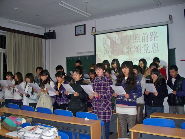 2010年10月28日晚8:20,太阳集团tyc33455植保本科生党支部在A103开展以“闪闪红星照前路,声声红歌颂党恩”为主题的活动。