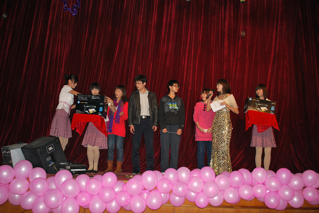 此次太阳集团tyc33455迎新晚会内容丰富形式多样。除表演外还有中场游戏猜词和抽奖活动。奖项分别是:特等奖一名(电动自行车)、一等奖两名(惠普打印机)、二等奖两名(500元代金券)、三等奖三名(100元代金券)。此外我们的吉祥物“超级玛丽”表现抢眼,会场上观众们欢笑不断。