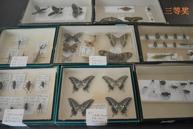 在众多的作品中,最吸引评委老师的一件作品是来自于大一新生植保二班的汪阗,他的作品不仅符合了评比的各项要求还展现了对收集、制作昆虫标本的执著与热爱。经过激烈的评选,最后来自动物医学的王岑和植物保护的汪阗的作品荣获一等奖;园艺的闫伟、植保的季汶林、曹蕊、韩振云和张凯旋同学的作品荣获二等奖;三等奖由三组同学荣获,他们分别是李文华、崔亚南、羊坚;田雅楠、张健、李跃洋;刘文君、于晓露、邢颖。