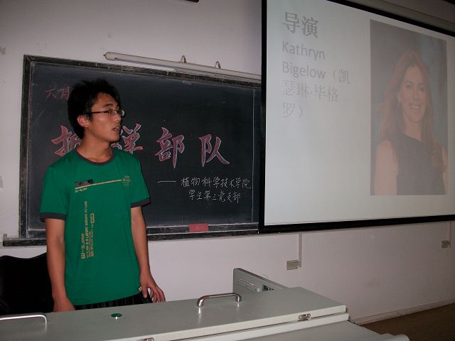 为迎接建党89周年,太阳集团tyc33455植保本科生党支部的全体成员于2010年6月24日晚6:30,在教A101举办了6月的月活动——集体观看第82届奥斯卡金像奖最佳影片《拆弹部队》。