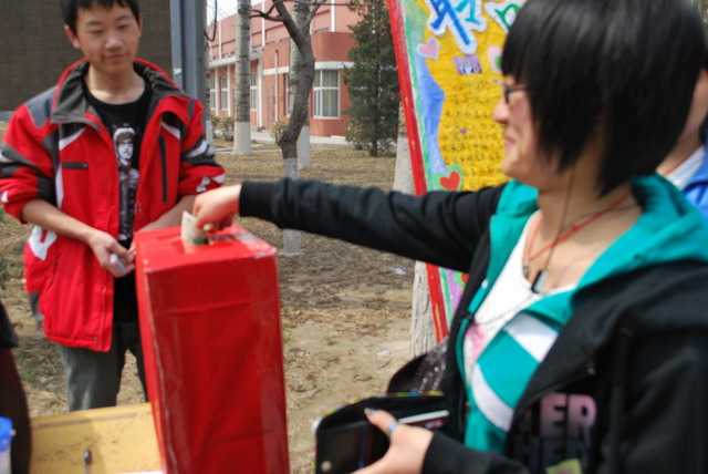 4月初春,乍暖还寒,同学们没有一个人懈怠,连续两天在捐款的地点以着热情的声音呼唤着每一位爱心的老师同学们,校园信息平台上传了他们热情的倡议书。校内师生得知情况纷纷伸出援助之手,捐款箱内装满了大家的爱心。