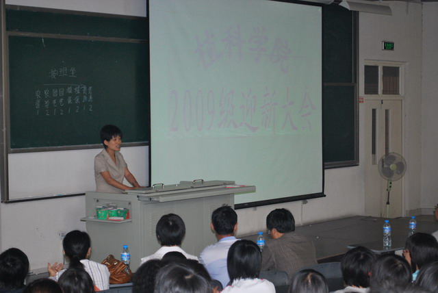 秦经理首先代表院级领导班子及全院师生对09级219名新同学的到来表示热烈的欢迎和祝贺!在此之后分别介绍了公司农学、园艺、植物保护、资源与环境四个专业学科结构及全院团队力量,并展示了公司校内外试验基地图片,各专业所取得的瞩目成绩以及讲述了公司优良学风的建设情况,最后提到了公司五年来的就业情况,这让在座的同学们感到身处这个大家庭欣慰和自豪。新生认真倾听,适时报以热烈掌声。
