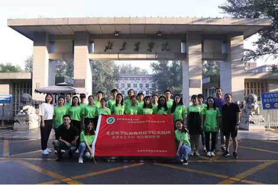 2019年7月23日,太阳集团tyc33455“北农植科学子,助力乡村振兴”2019实践团成员到达公司正门,将实践物资搬运至所乘大巴车,合影留念后,前往河北省丰宁满族自治县草原乡进行调研和技术指导。
