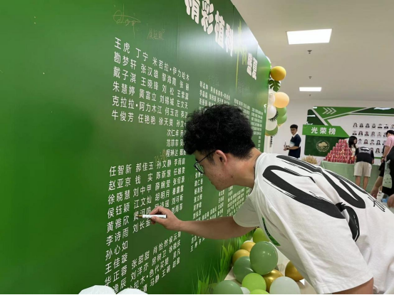 典礼开始前,同学们陆续到达会场并在毕业生签名墙下留下了自己的名字。