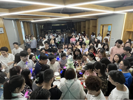 现场其乐融融的氛围让在场的全体师生都深受感动,随着蛋糕被推进会场,气氛达到了顶峰。