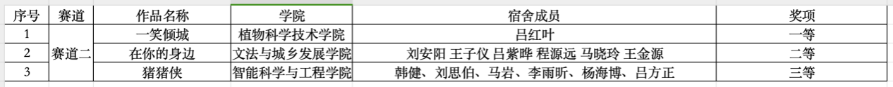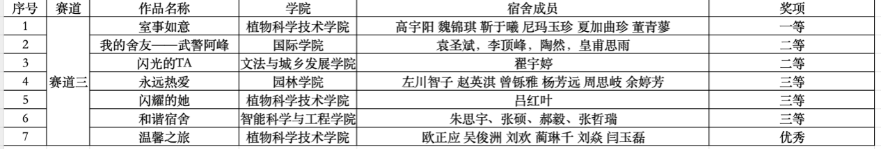 让我们共同祝贺上述获奖同学,也希望大家利用本次比赛机会,进一步增强团队意识,加强舍友之间的交流合作和情感联结,营造和谐的宿舍人际关系,增强宿舍凝聚力,共同健康成长。