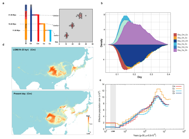 该研究广泛收集了东亚范围的394份涵盖4个种的栗属物种资源,基因组数据揭示出锥栗(C. henryi)是栗属植物中最古老的种于约31.56个百万年前首先分化,东亚栗属植物是一个单系类群并在中新世时期完成了种间分化。