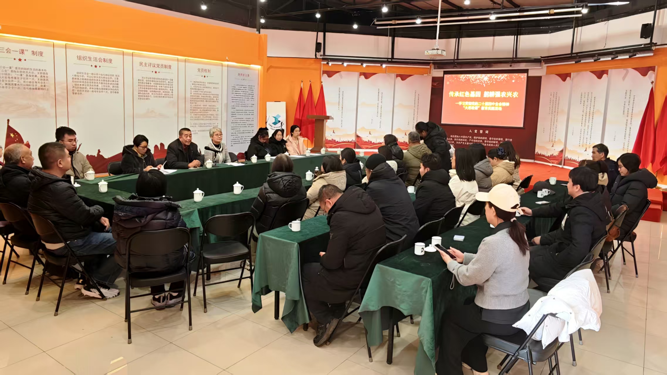 为深入学习贯彻党的二十届四中全会精神,近日公司党委组织师生到位于怀柔区庙城镇的北京桃山月亮湖种养殖专业合作社开展“传承红色基因,躬耕强农兴农”学习贯彻党的二十届四中全会精神教育实践活动,在田间地头宣讲二十届四中全会精神。公司师生、月亮湖种养殖专业合作社工作人员等近50人参加此次活动。