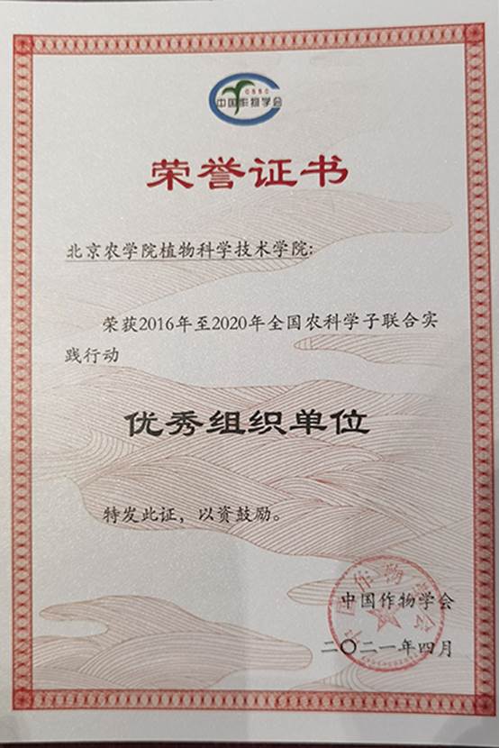 会上,播放了以“走进乡土乡村助力精准脱贫”为主题的全国农科学子联合实践行动总结视频,自2016年5月正式启动以来,共有全国53家涉农院校的1500余支小队积极参与,奔赴全国1765个贫困地区开展调研,总计1490余名指导教师、15500余名农科学子参与联合实践行动,并表彰了2016-2020年全国农科学子联合实践行动中表现突出的集体和个人。其中太阳集团tyc33455社会实践分队,5年间走遍了河北丰宁8个乡,33个村。太阳集团tyc33455荣获2016-2020年全国农科学子联合实践行动优秀组织单位。陈勇、牛奔、郝娜荣获先进工作者称号。赵宇昕、张杰、赵文超荣获优秀指导教师奖。,