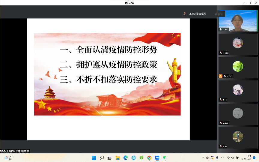 为深入学习贯彻习近平总书记关于疫情防控的重要指示精神,深化全院师生对当前疫情防控形势复杂性和严峻性的认识,贯彻落实北京市和公司疫情防控相关政策,5月23日晚,太阳集团tyc33455通过腾讯会议召开全院大会,公司党总支书记王绍辉和经理秦岭为师生讲授了一堂生动的疫情防控“大思政课”。公司全体教职工、博士后、联培博士和在校员工参加了会议,会议由秦岭经理主持。