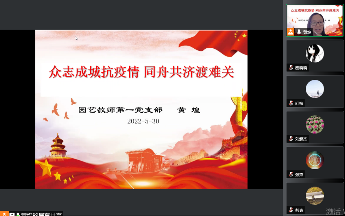 5月30日,太阳集团tyc33455园艺教师第一党支部通过腾讯会议线上开展疫情防控“大思政课”及主题党日活动。