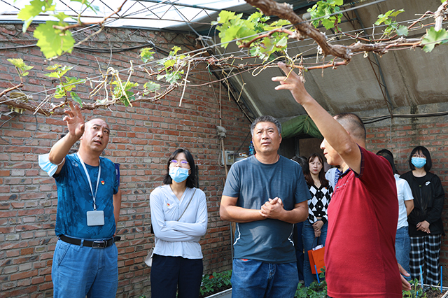 公司师生深入试验田地、大棚温室进行现场调研与交流,教师与场站基地工作人员就葡萄与黄精林下立体栽培模式、草莓种质资源引进及草莓基质槽栽培技术以玉米大豆套间作栽培模式等问题展开深入探讨,员工党员结合实地情况深化专业学习效果。